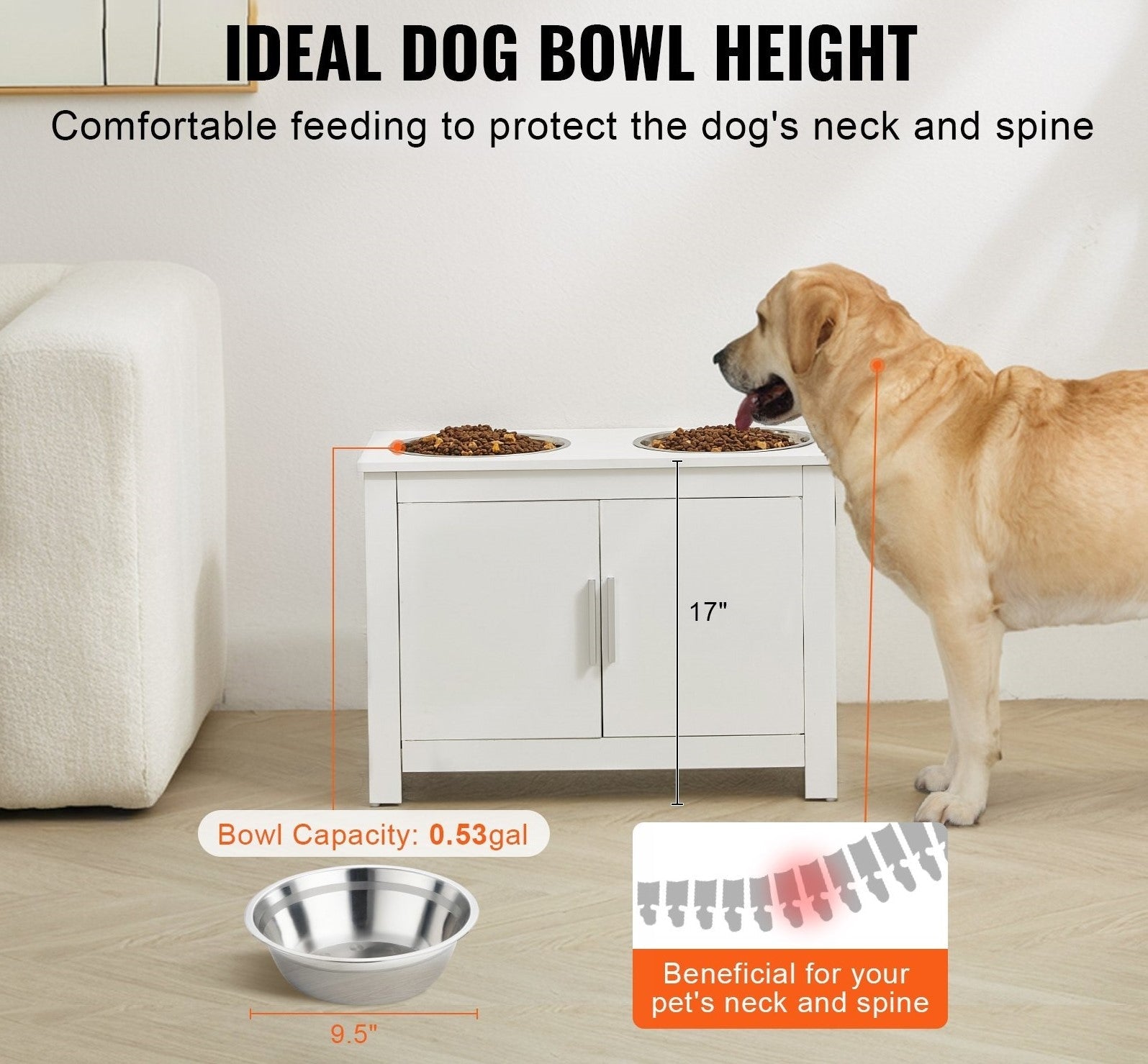 Den har ett stort förvaringsskåp som erbjuder gott om utrymme för husdjursförnödenheter och foder. Tillverkad av melamin MDF, den är robust, hållbar och vattenbeständig med en slät, plan yta.