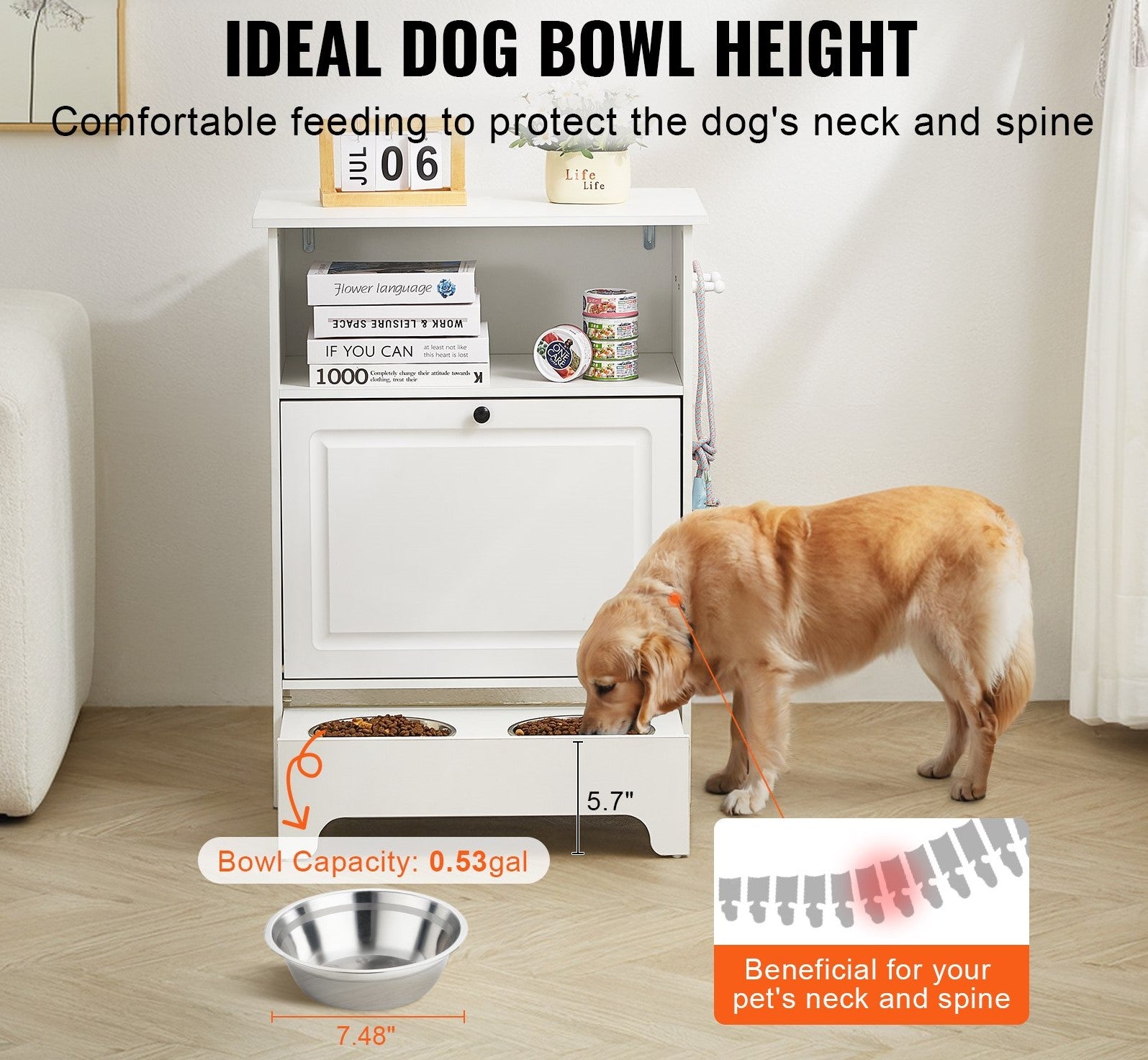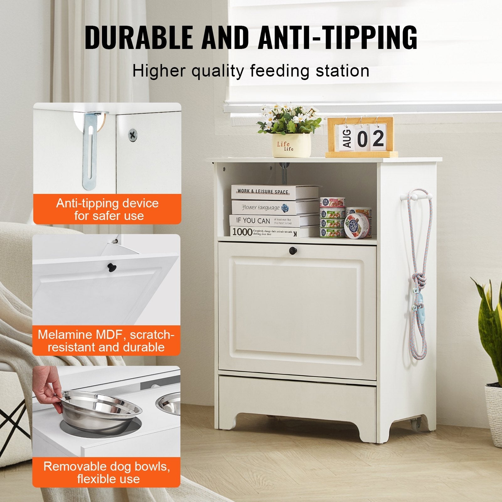 Vår foderstation för husdjur med förvaring erbjuder bekväm utfodring genom att höja skålarna, vilket främjar bättre nackhälsa för dina husdjur.